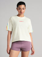 Women's Off White Cult Vibe Stripes Boxy Fit T-shirt