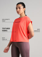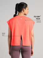 Train easy, move better with the Women's Peach Muscle Ease Boxy Fit T-shirt, built to keep up with every rep. The FLY-DRY™ tech wicks sweat away to keep you cool and dry as intensity builds. The texture elevates the overall aesthetic of the tee. The back slit enhances ventilation and flexibility, allowing unrestricted motion. The deep armholes allow enhanced airflow and unrestricted movement.