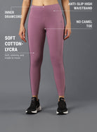 Stay comfortable and confident in the Women's Performance Cotton Purple Tights. Crafted from soft cotton-lycra, they offer a breathable, flexible fit for all-day comfort. The anti-slip high waistband provides enhanced support, while the inner drawcord ensures a secure feel. Designed with a no-camel-toe feature for smooth coverage, plus a side pocket to keep essentials handy. The reflective logo adds visibility for both function and style.