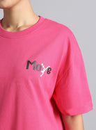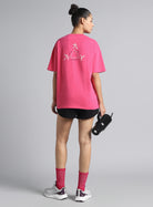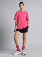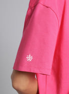 Add a playful pop of colour to your wardrobe with the Women's Pink Move Oversized T-shirt, crafted to bring style and ease to your everyday look. The super-soft 100% cotton fabric is gentle on your skin and delivers all-day comfort with a luxurious feel. The ribbed neckband holds its shape for a neat finish, while the oversized fit brings relaxed, laid-back vibes.