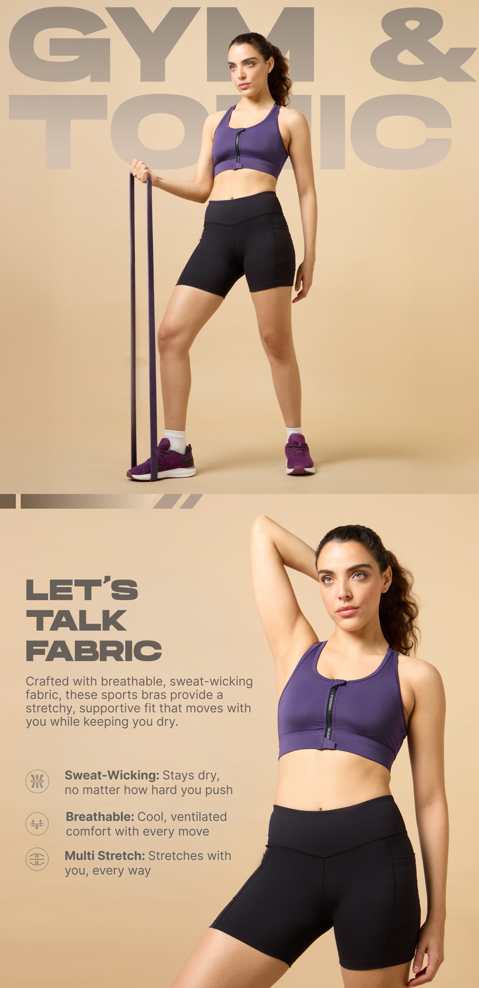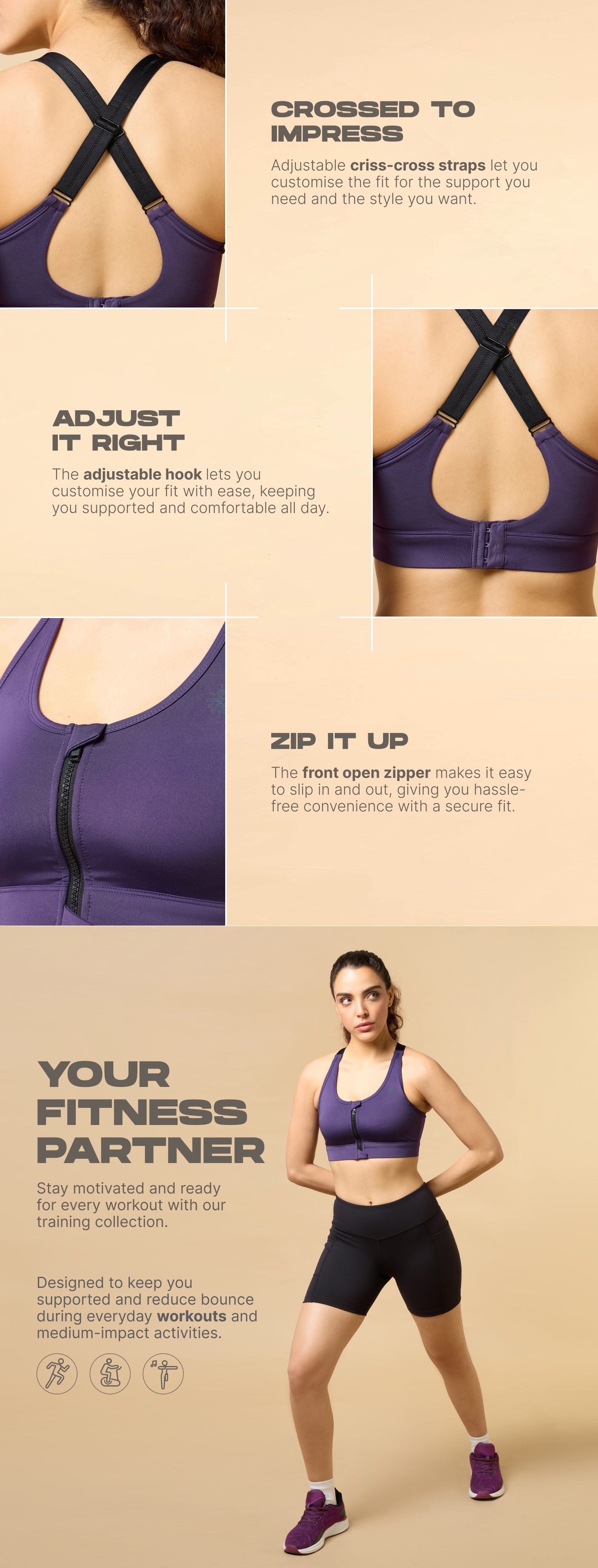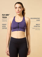 Designed for performance, this Women's Plum Training Sculpted High Support Bra features multi-stretch fabric for a flexible, supportive fit. Crafted with FLY-DRY™ technology, it wicks away sweat to keep you dry and focused. The front zipper allows for easy wear, while the criss-cross back enhances movement and breathability. Crafted with a bold holographic logo, it’s the perfect blend of function and standout style.