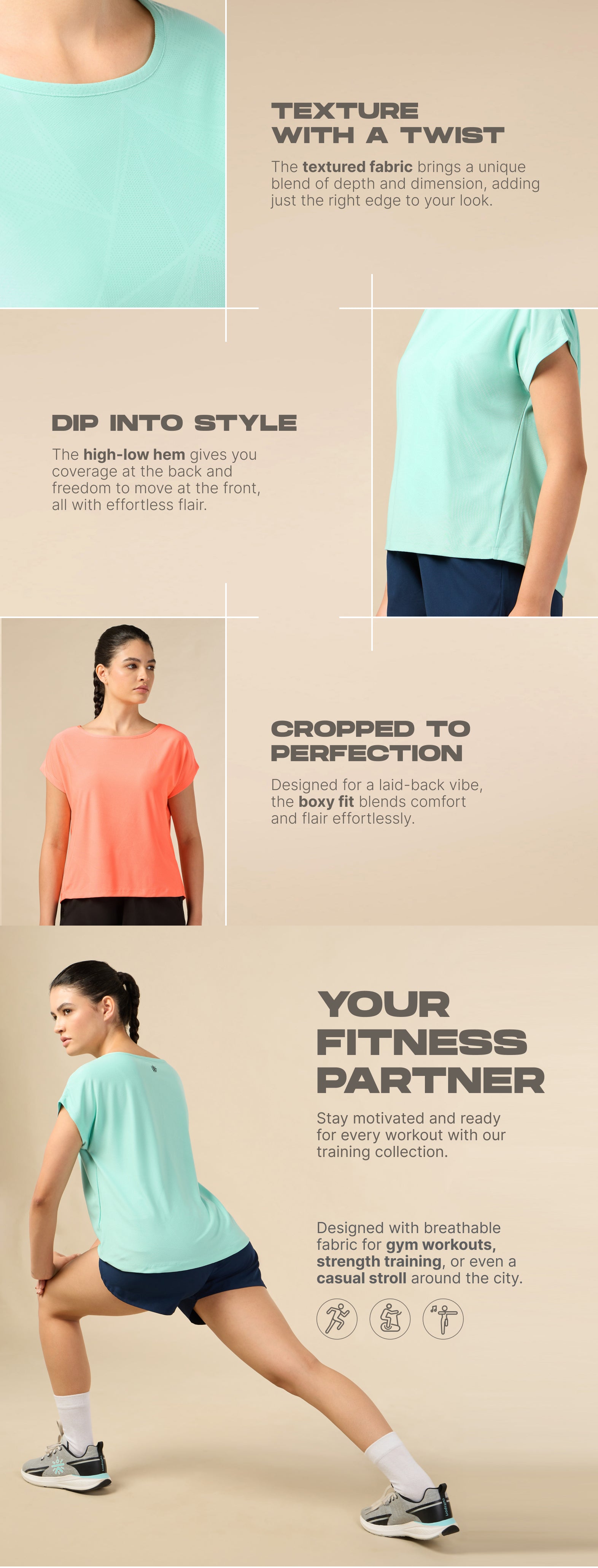 Crush your workout in style with the Women's Premium Jacquard Knit Orange top. Crafted with soft handfeel fabric for lasting comfort, it features FLY-DRY™ technology to keep you cool and dry. Textured fabric adds a stylish touch, while seams for mobility ensure effortless movement. Finished with a high-low hem for extra coverage and sleek style, this tee is built to move with you through every session.