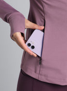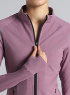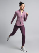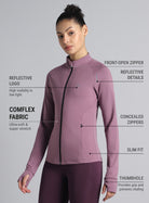 Take on every run with the Women's Purple Performance Training Essential Jacket, a sleek layer built for speed and performance. Made with COMFlex fabric that combines cloud-like softness with flexible stretch, giving you comfort that moves with you effortlessly. Featuring a front-open zipper allows easy adjustments and better ventilation, and concealed zipper pockets let you carry essentials securely. The thumbhole sleeves offer a secure fit that keeps you covered and adds a sleek, sporty edge to your look. The reflective details enhance visibility, keeping you safer during evening workouts or outdoor activities.