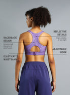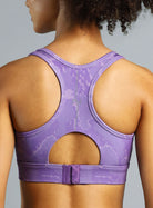 Stay fast, stay fierce in the Women's Purple Printed Racerback High Impact Bra. Crafted with FLY-DRY™ tech, it keeps you cool and dry through every mile. The multi-stretch fabric allows full range of motion, the high-impact design offers maximum support and bounce control. The removable padding ensures customised comfort, and the racerback design delivers extra stability and freedom during intense sessions.
