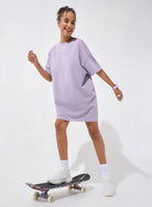 Find your everyday rhythm in the Women's Purple Soft Form Oversized T-shirt Dress, created for modern comfort that keeps pace with your day. The soft form fabric feels exceptionally smooth with adaptive stretch that supports fluid movement. The shape-retaining construction preserves its silhouette through repeated wear and washing. The T-shirts dress sits slightly above the knee for everyday ease without compromising coverage. The oversized fit brings a modern edge while keeping movement easy and unconfined.