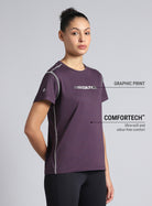 Train with ease in the Women's Purple Training HIIT COMFORtech T-shirt, designed to keep you moving in comfort. Made with COMFORtech™ fabric that’s ultra-soft and built to fight odour, keeping you fresh and comfortable through every session. The melange texture adds a dynamic look, while contrast stitches lend a stylish edge. The minimal print keeps it versatile, and the regular fit ensures a classic silhouette.