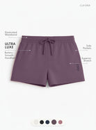 Keep your day moving in style with the Women's Purple Ultra Luxe Classic Shorts, designed for elevated comfort that adapts effortlessly to your routine. The ultra luxe fabric feels buttery-smooth with superior stretch that moves seamlessly with your body. The shape-retaining construction helps maintain structure through repeated wear and washing. The elasticated waistband provides a secure, flexible fit. The side pockets keep essentials within easy reach wherever the day takes you.