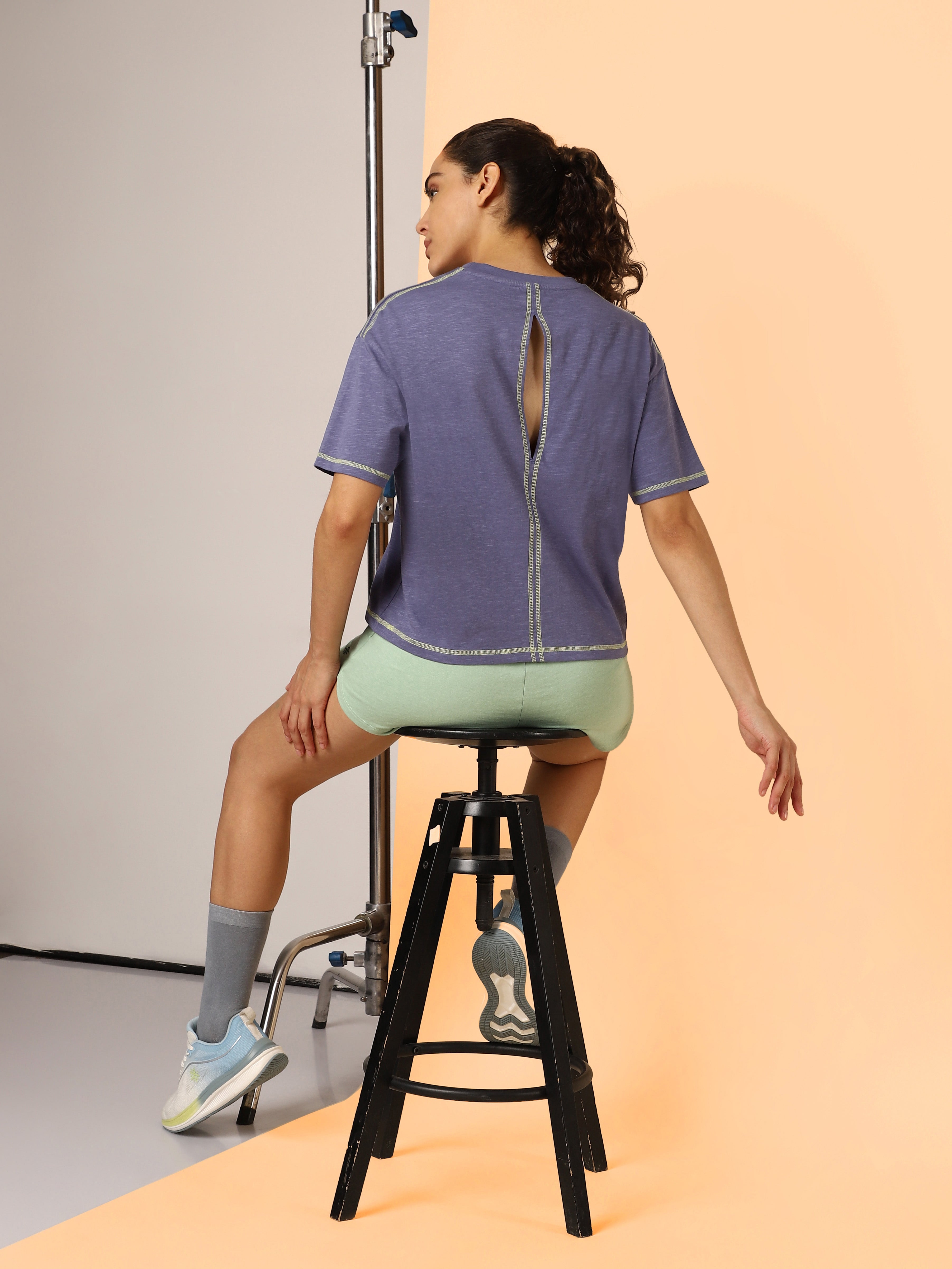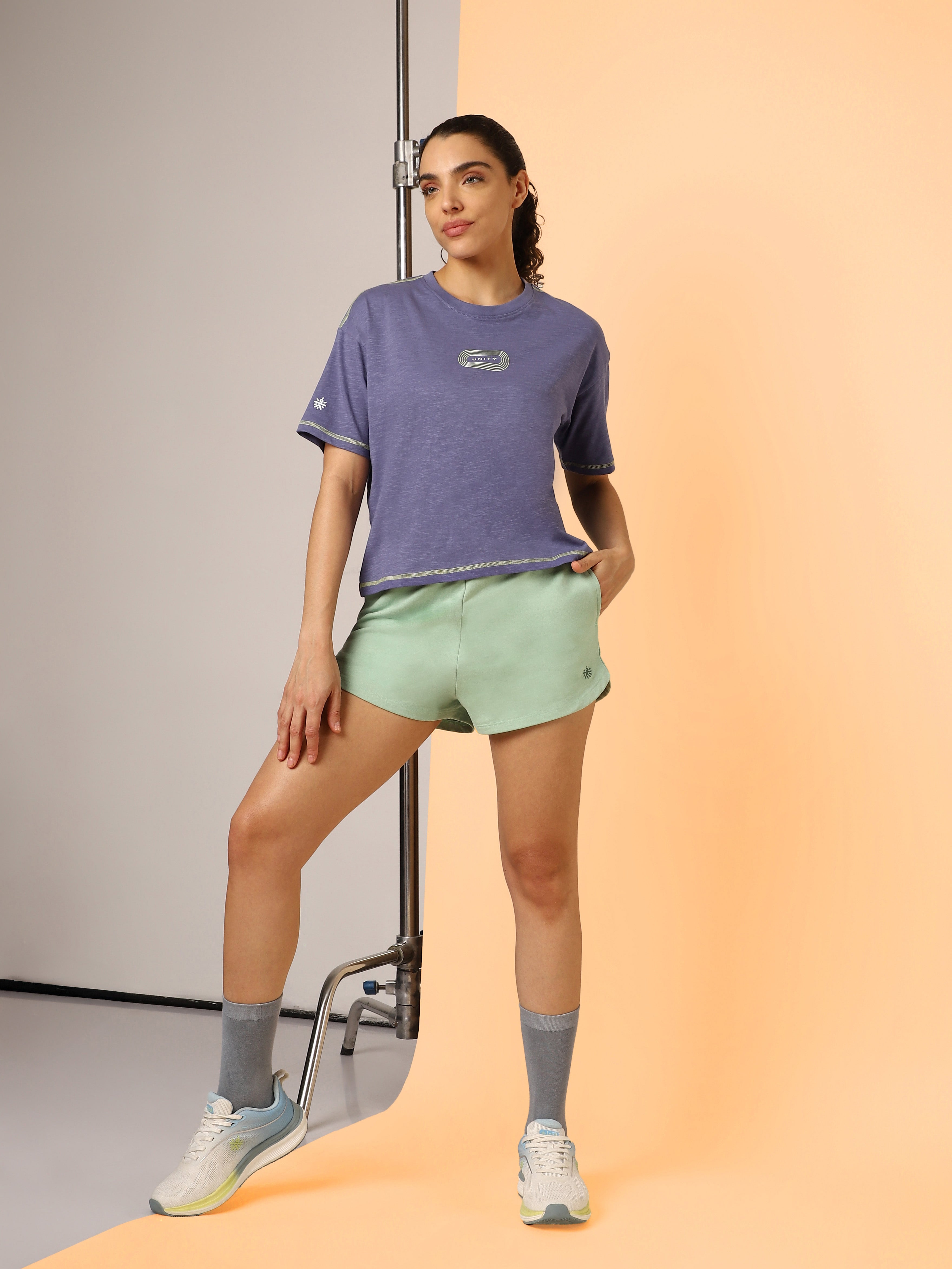 Step up your style with the Women's Purple Unity Pro Top. Made from super-soft fabric, it feels smooth and gentle against the skin. The ribbed neckband adds a classic touch, while the contrast stitches gives it a bold edge. The stylised back and chest print add a unique visual statement. The boxy crop fit allows easy movement.