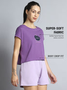 Find your flow in the Women's Purple Yoga Harmony Graphic T-shirt. Made from super-soft fabric, it feels smooth and gentle against the skin. Designed with strategically placed seam for enhance movement and flexibility. The boxy mid-crop fit adds a stylish and relaxed vibe while the graphic print adds a standout touch to your look.
