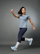 Push your limits in the Women’s Teal Move Forward Running T-shirt. Designed with side slits for easy movement and a lightweight feel, this T-shirt keeps you comfortable and unrestricted through every run. The regular fit ensures a sleek and active look, making it perfect for any training session.