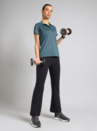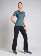 Bring a sporty twist to your look with the Women's Teal Performance Training Polo. The FLY-DRY™ technology wicks away sweat to keep you cool and dry through every session. The textured fabric lends a refined, elevated look to your wardrobe. The ribbed collar holds its shape wear after wear, while the button placket gives you a customisable neckline to compliment your day.