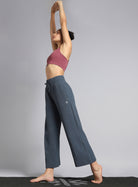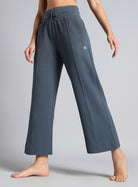 Stretch with ease in the Women's Teal Yoga Flow Wide Leg Pants, designed for effortless comfort and style. Made from textured fabric that adds a sleek finish while keeping you comfortable through every move. The high waist offers a secure, flattering fit, while the adjustable drawcord lets you personalise your comfort. The relaxed fit creates a laid-back silhouette, and the side pockets keep your essentials close at hand.