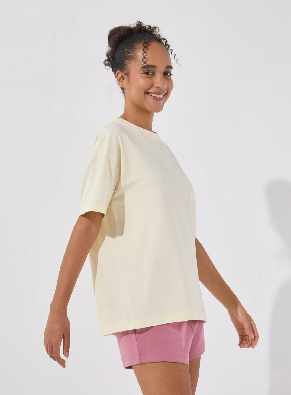 Move with ease in the Women's White Soft Form Comfort Oversized T-shirt, designed for modern comfort and effortless movement through your day. The soft form fabric offers supreme softness with adaptive stretch to support natural motion. The shape-retaining structure helps the T-shirt maintain its form through repeated wear. The ribbed neckband provides stretch while holding its shape. The oversized fit provides extra room with a confident, contemporary edge.