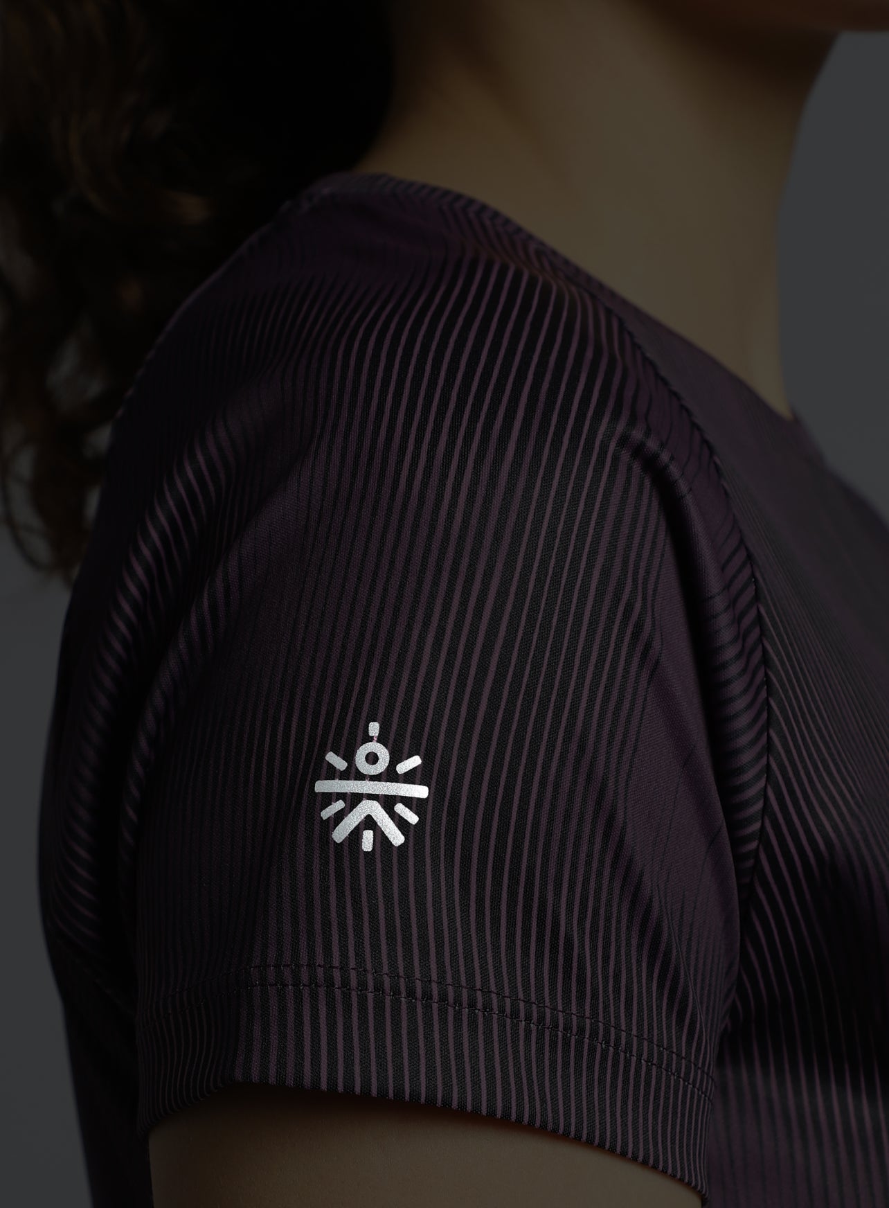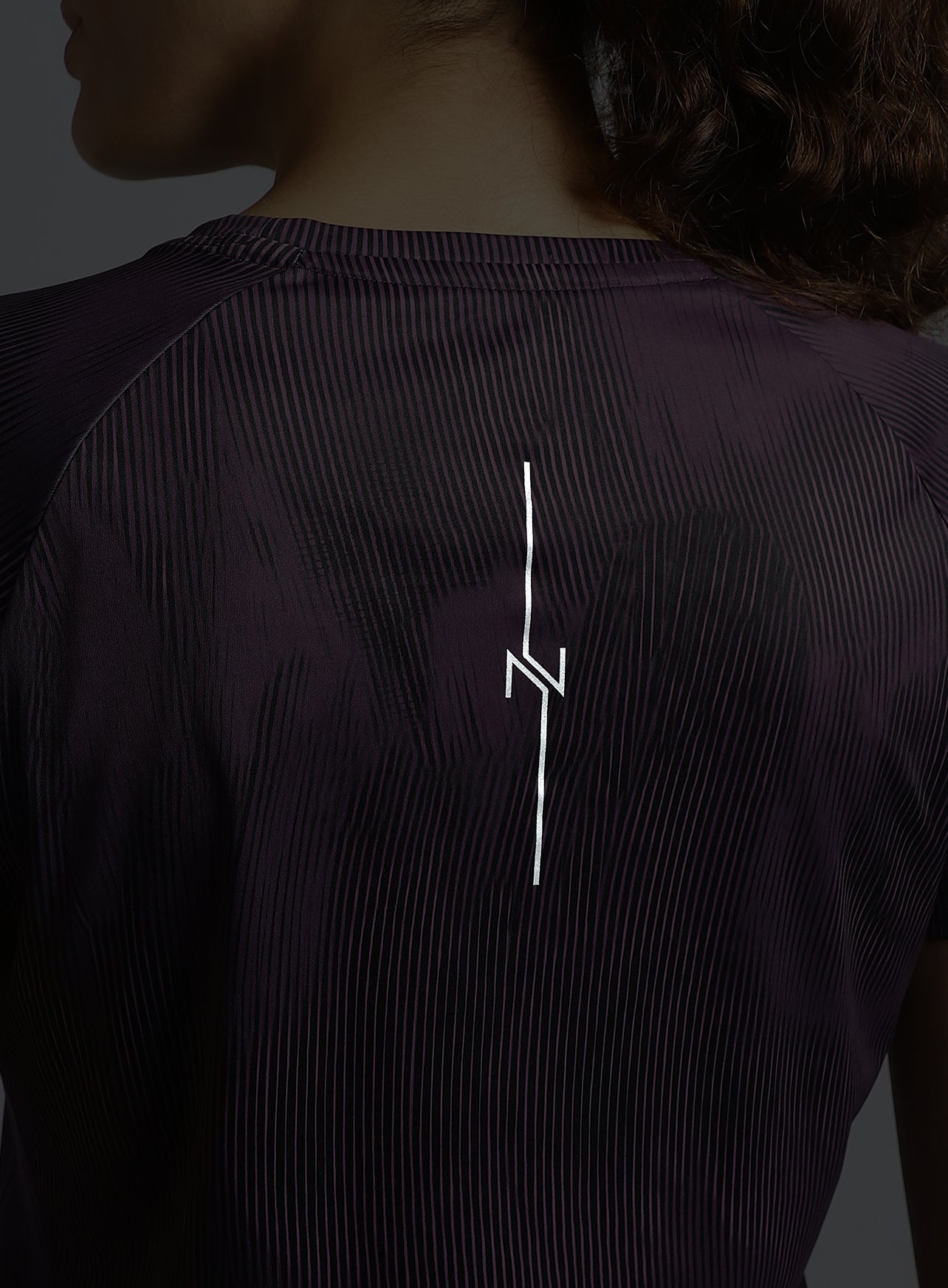 Go the distance in the Women's Wine Urban Camo Run T-shirt. Crafted with FLY-DRY™ tech, it wicks away sweat to keep you dry and focused. The lightweight fabric ensures easy movement, while the breathable panels enhance airflow. The raglan sleeves offer flexibility, and the curved hem provides extra coverage. The all-over print adds a bold touch, while the reflective details enhance visibility.
