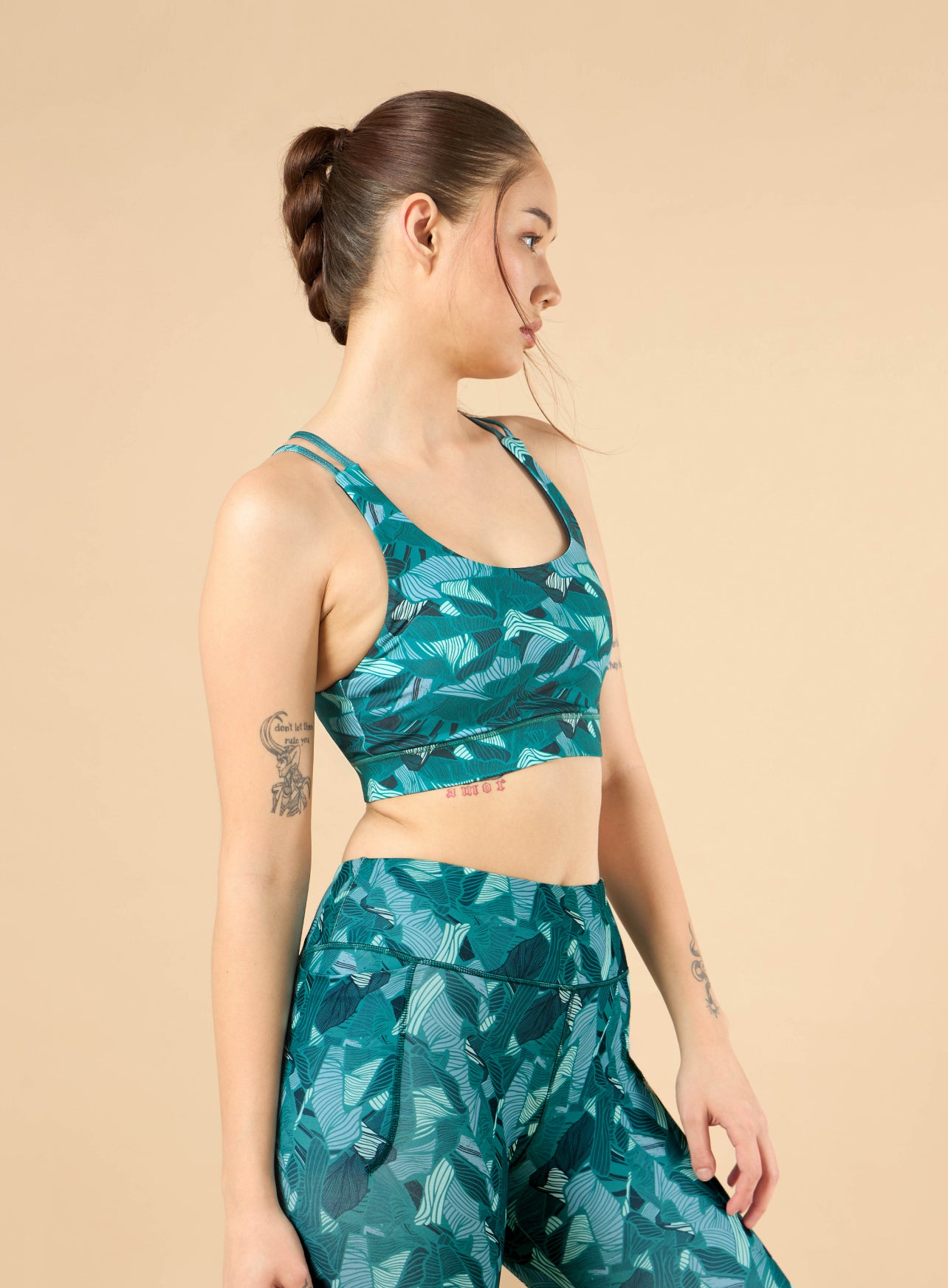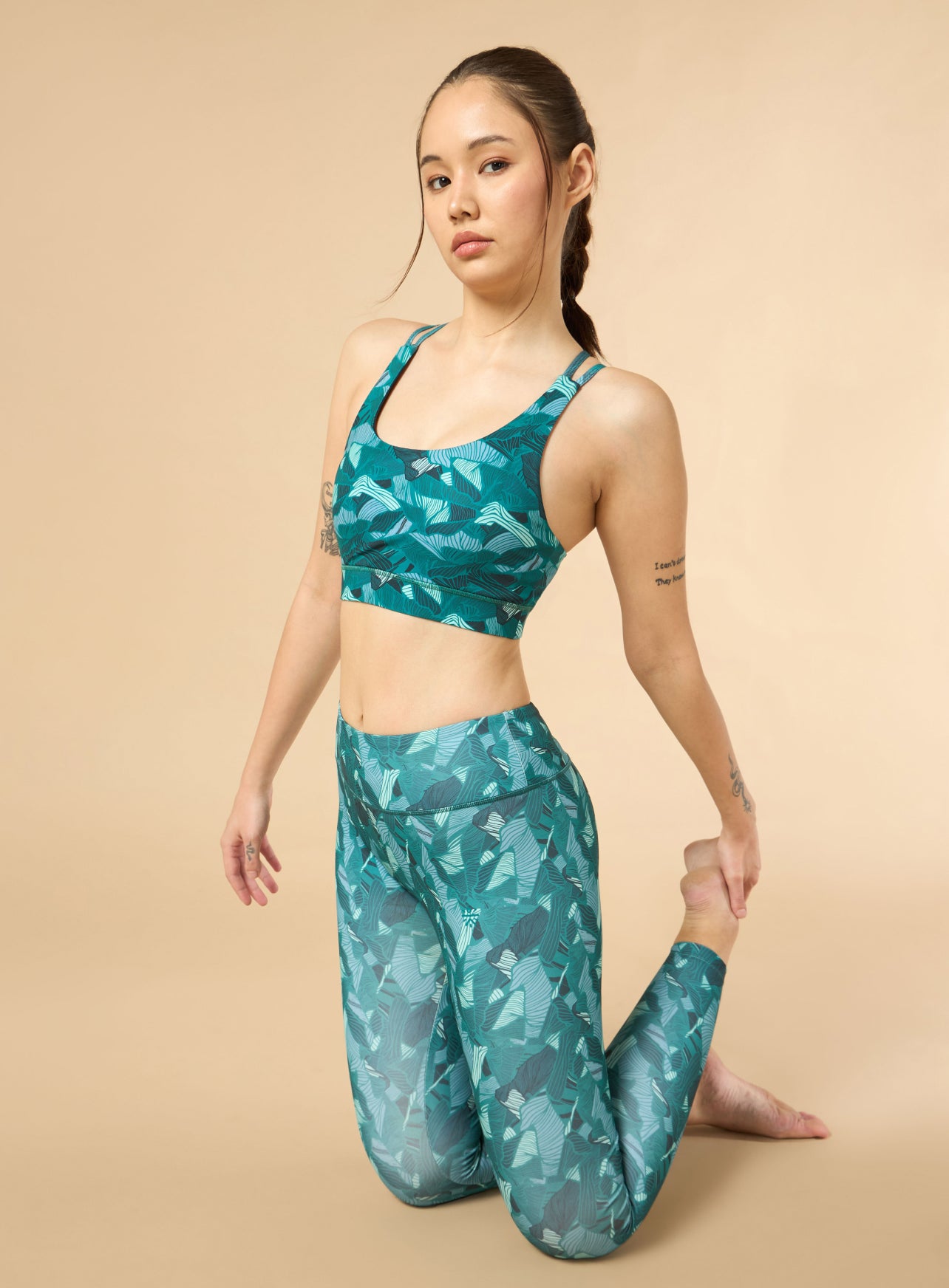 Stay grounded and supported with the Women's Zen Garden All-Over Print Medium Support Sea Green Bra. Made with FLY-DRY™ fabric that wicks moisture, keeping you cool and calm through every pose. Removable padding offers personalised comfort, while the criss-cross back design blends style with full mobility. Stay comfortably supported with high-impact coverage that adapts to both intense flows and serene moments.