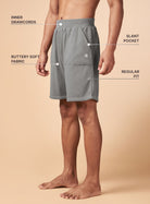 Sink into softness with our Yogi Shorts in grey color. Made with a luxuriously soft fabric, these regular-fit shorts feature an inner drawcord for a customizable fit that moves with you. Perfect for yoga, workouts, or lounging around in comfort.
